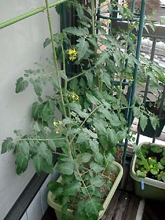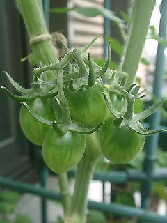育ちの悪いベランダミニトマト。