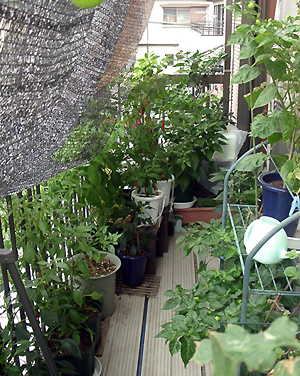 盆入り以降、寒冷紗とすだれで遮光してます。ご近所の目隠しにもなって良いです。それにしてもこの暑さはちょっと異常ですね。おまけに昨日今日の強風。唐辛子の枝が何本かポッキリといってしまったようです。