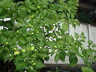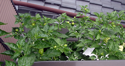気にかかるのはネットで買った偽島唐辛子。かなり早い時期に結実して現在たくさんの実が生っているんですが一向に熟す気配がありません。このまま青いままとか!?