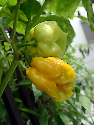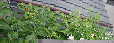家の中で避難させた唐辛子をベランダに戻す前に、ベランダを掃除しました。まあ、どうせまたすぐに汚れるんですけどね。 朝早くに作業をはじめて、すべての唐辛子を出し終わったのが昼過ぎ。唐辛子の鉢を出しながらひとり品評会&撮影会なんてやっていたもんだからエライ時間がかかってしまった。 唐辛子の株全体を写すのはこれが最後かと思います。強風の中での撮影でブレまくり&画質落としてるのであんまり綺麗じゃないですが、 画像クリックで拡大画像(400×600)が見れます。