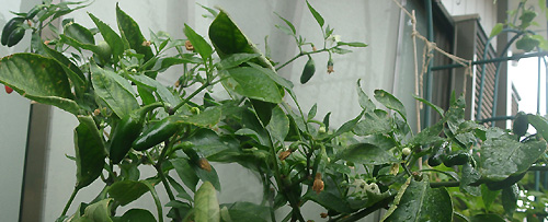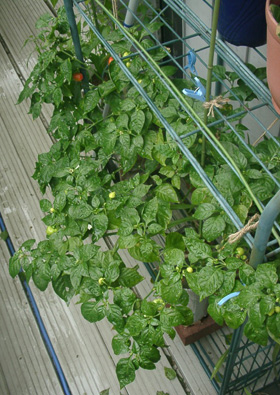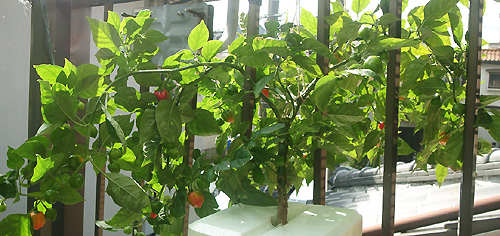 ペットボトル水耕栽培ハラペーニョです。 この寒空の下、花を咲かせてます。