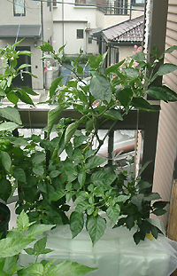 島とんにようやく実が生りました。 コーレーグスを作りたくて早々に泡盛買ったはいいものの、肝心の島とんがなかなか成長せず8/9にようやく初開花です。遅すぎです。 小笠原島唐辛子の方はぼちぼち色付いてきました。