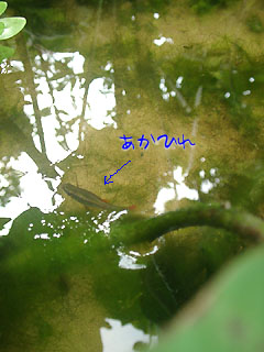 ハス鉢の水の中には現在7匹のアカヒレが棲んでいます。お腹をパンパンに膨らませたアカヒレのメスを何度も見ているので、間違いなく産卵している筈なんですが。