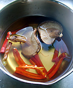 私も『つぎ汁』を味わってみたくて、収穫したドジョウナンバンを使って作ってみました。作り方がわからないので其処らへんは適当に(汗