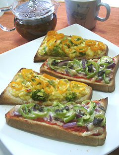 唐辛子の辛さとフルーティーな甘さを兼ね備えたヒートウェーブ。 例えるなら、辛みのあるフルーツピーマン? 辛さレベルはやや低いです。 ハラペーニョ>>ヒートウェーブ>ブラックハンガリアンくらいかな? マリネにして食べたら美味しそう。 手っ取り早く大量消費したいので今日はトマトチリソースにしちゃいます。 用意するのはトマト、唐辛子、ニンニク。 湯剥きしたトマトと種抜きした唐辛子をフープロ等でペースト状にして クツクツと煮詰めるだけ。最後に塩を加えて完成。 面倒臭いので裏ごしはしません( -Д-) トマチリソースでピザトースト作りました。ついでにタマゴトーストも。 ピザトーストには刻んだトウガラシ、アーリーレッド、アンチョピをトッピング。 ダブルチリピザトーストっす( ‾▽‾)ノ