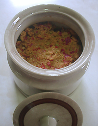 行き当たりばったりで作った豆板醤(トウバンジャン)。 本来、豆板醤(トウバンジャン)はそら豆と赤唐辛子を発酵させて作るもの。今の時期そら豆が手に入るわけもなく、たまたま冷凍庫にストックしてあった枝豆を使って作っちゃいました。遠からず近からずそら豆と同じ青豆って事で。