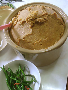 右の写真に写ってるのが麦味噌です。