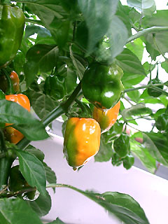 島とうがらしとハバネロオレンジがようやく色づいてきました。