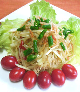 ソルタム・タイ(青パパイヤのサラダ)です。