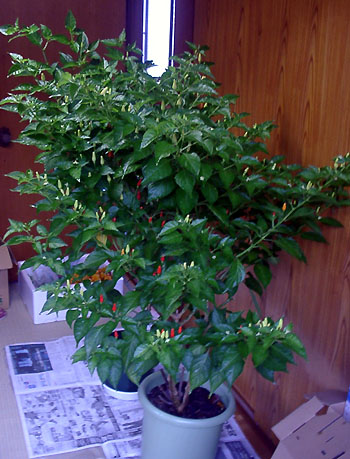 プランター植えの唐辛子。