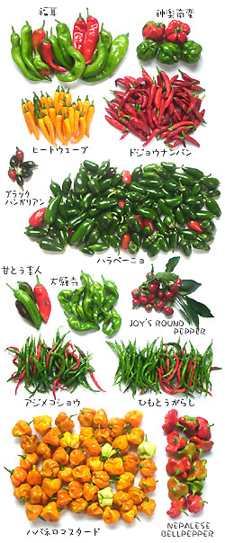 神楽南蛮、ドジョウナンバン、アジメコショウ、 ハラペーニョなど。