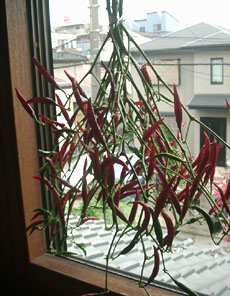 表通りから見ると唐辛子の赤が目につくようで、ご近所や訪問客や通りすがりの人に